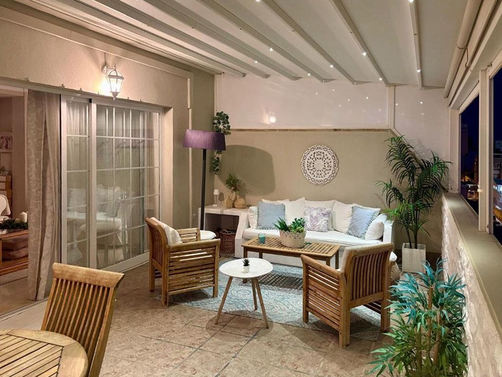 - Amplio salón comedor con acceso a una estupendo terraza de unos 40 m2. La terraza posee un toldo eléctrico que permite ser aprovechada incluso en estaciones frías.