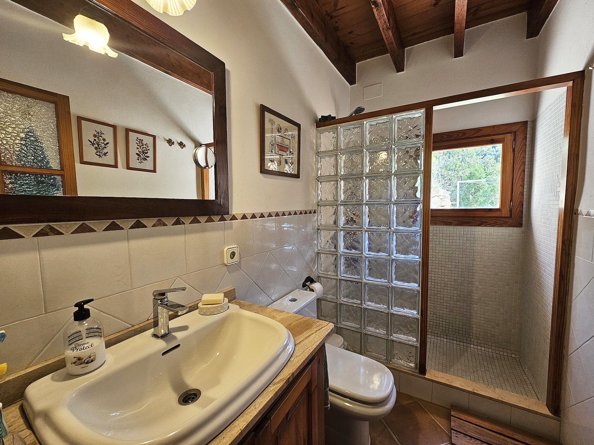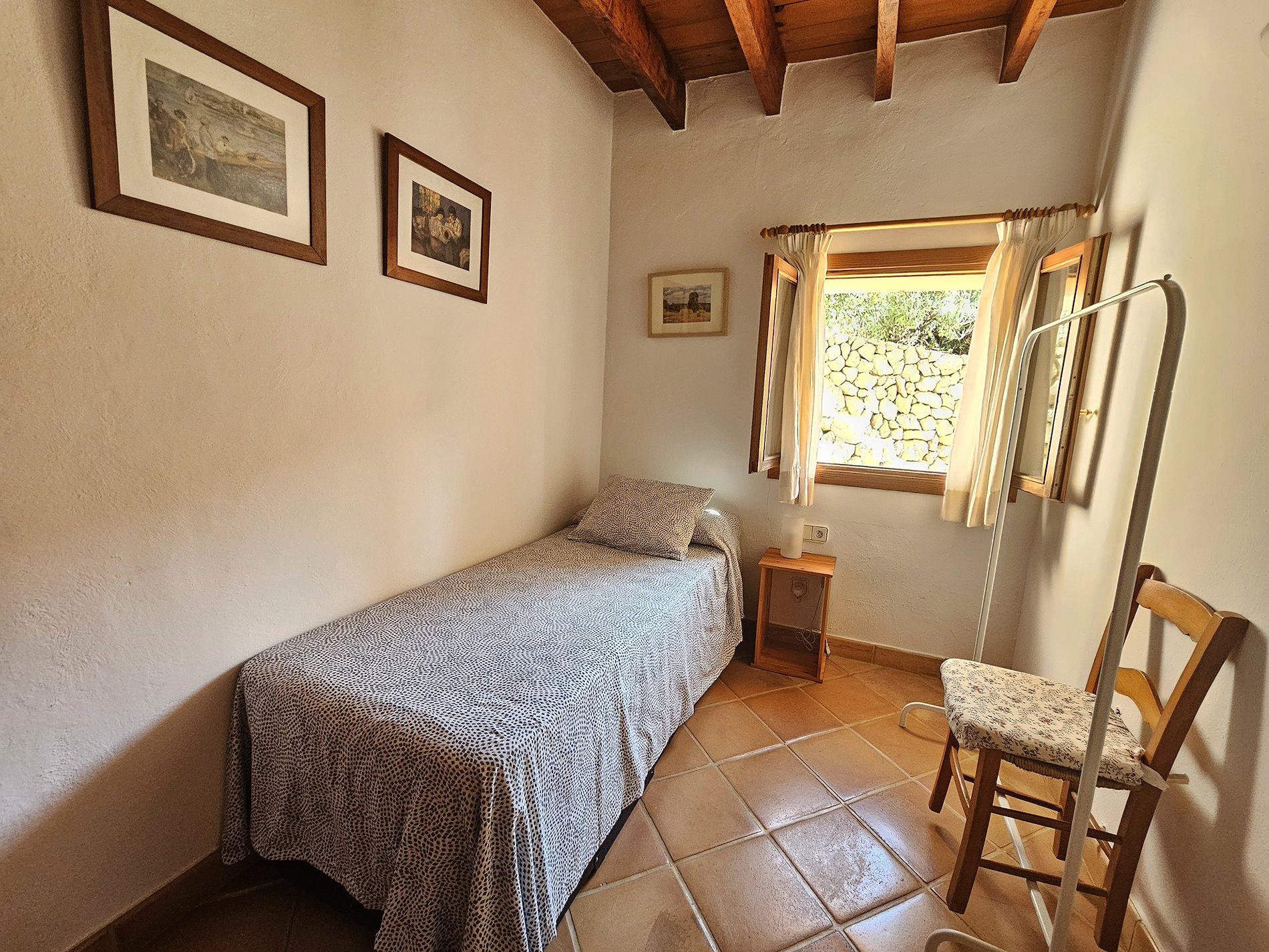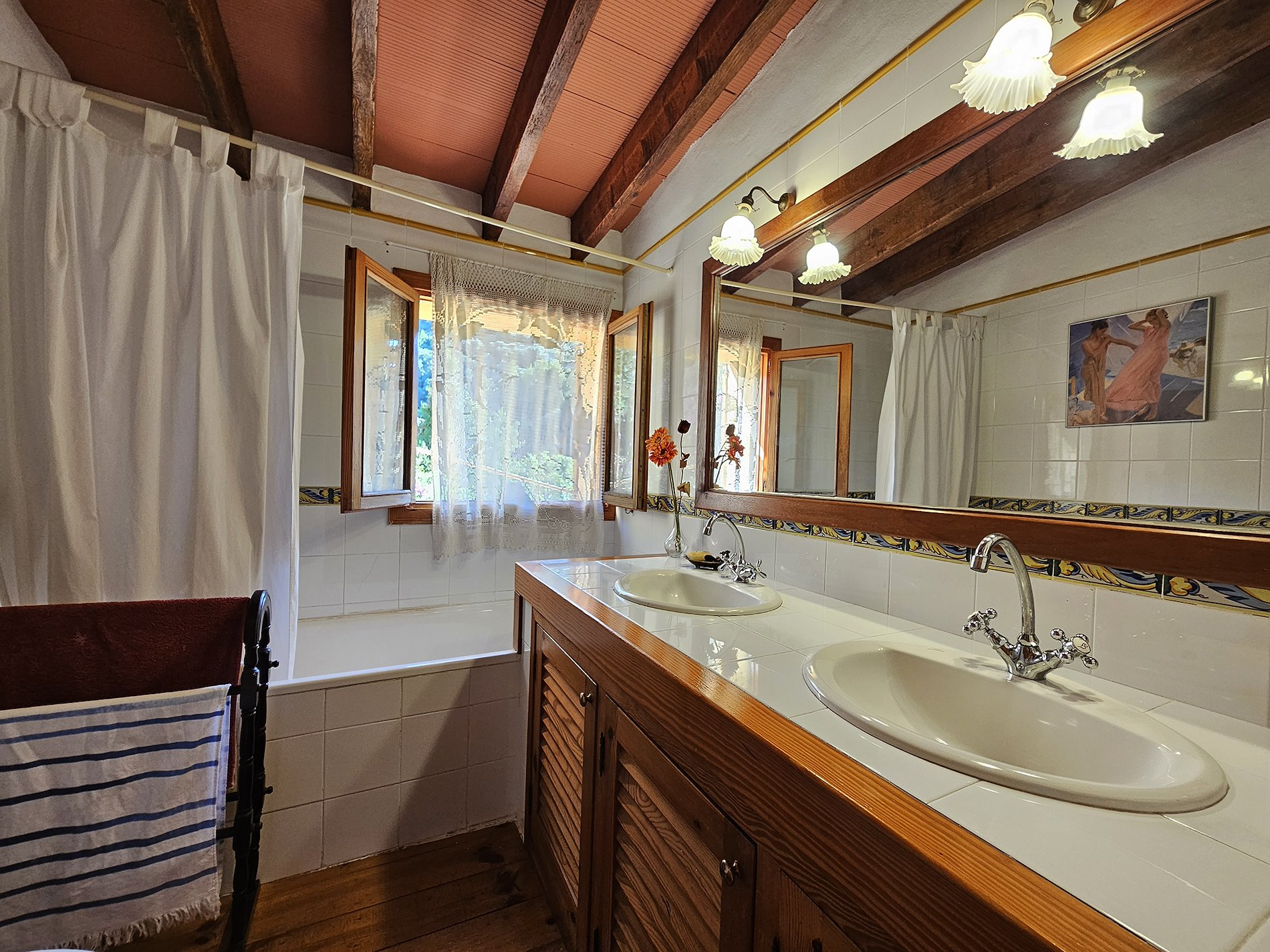 Suelos de gres.Carpinteria interior y exterior de madera. Vigas vistas.
