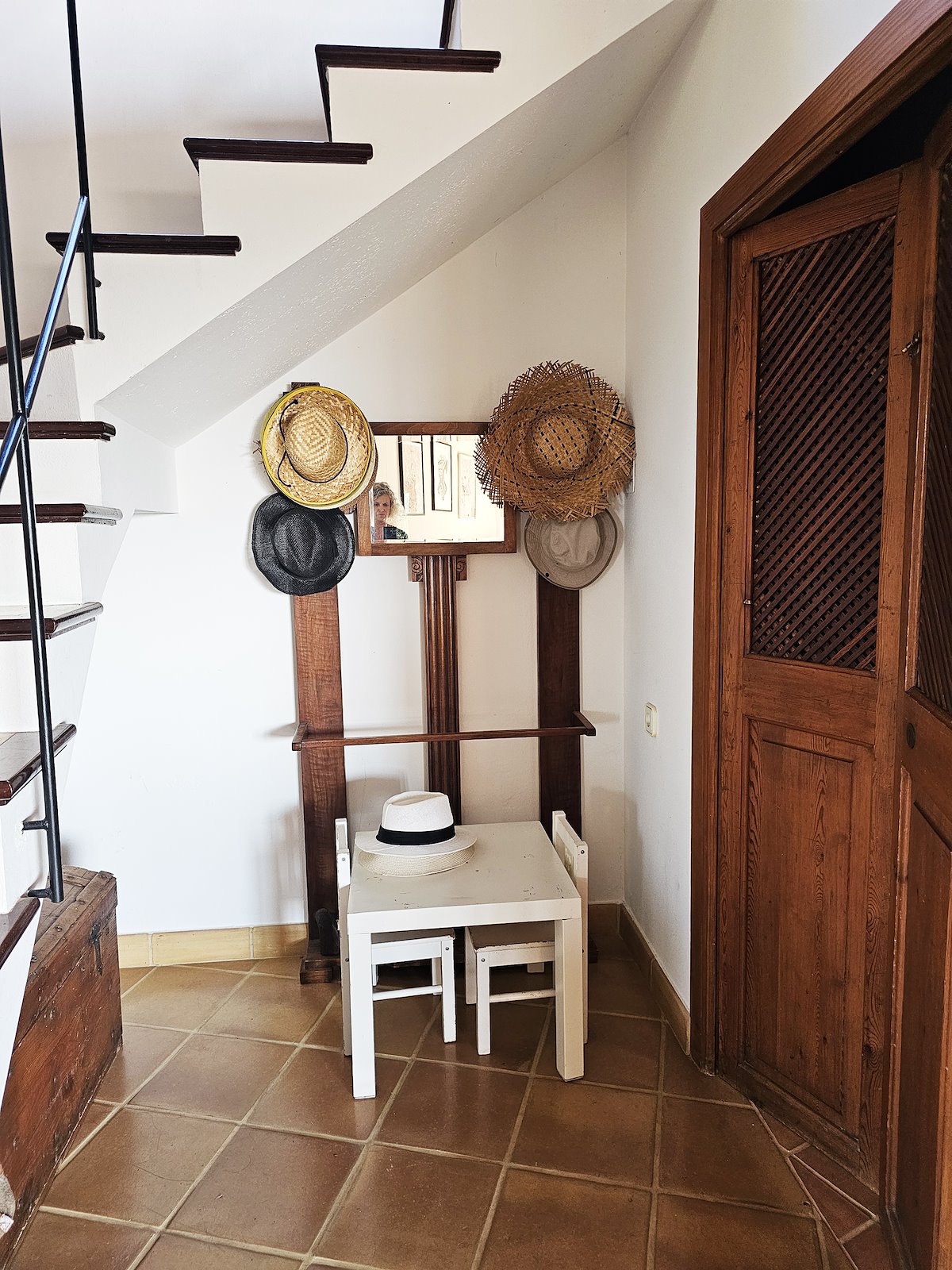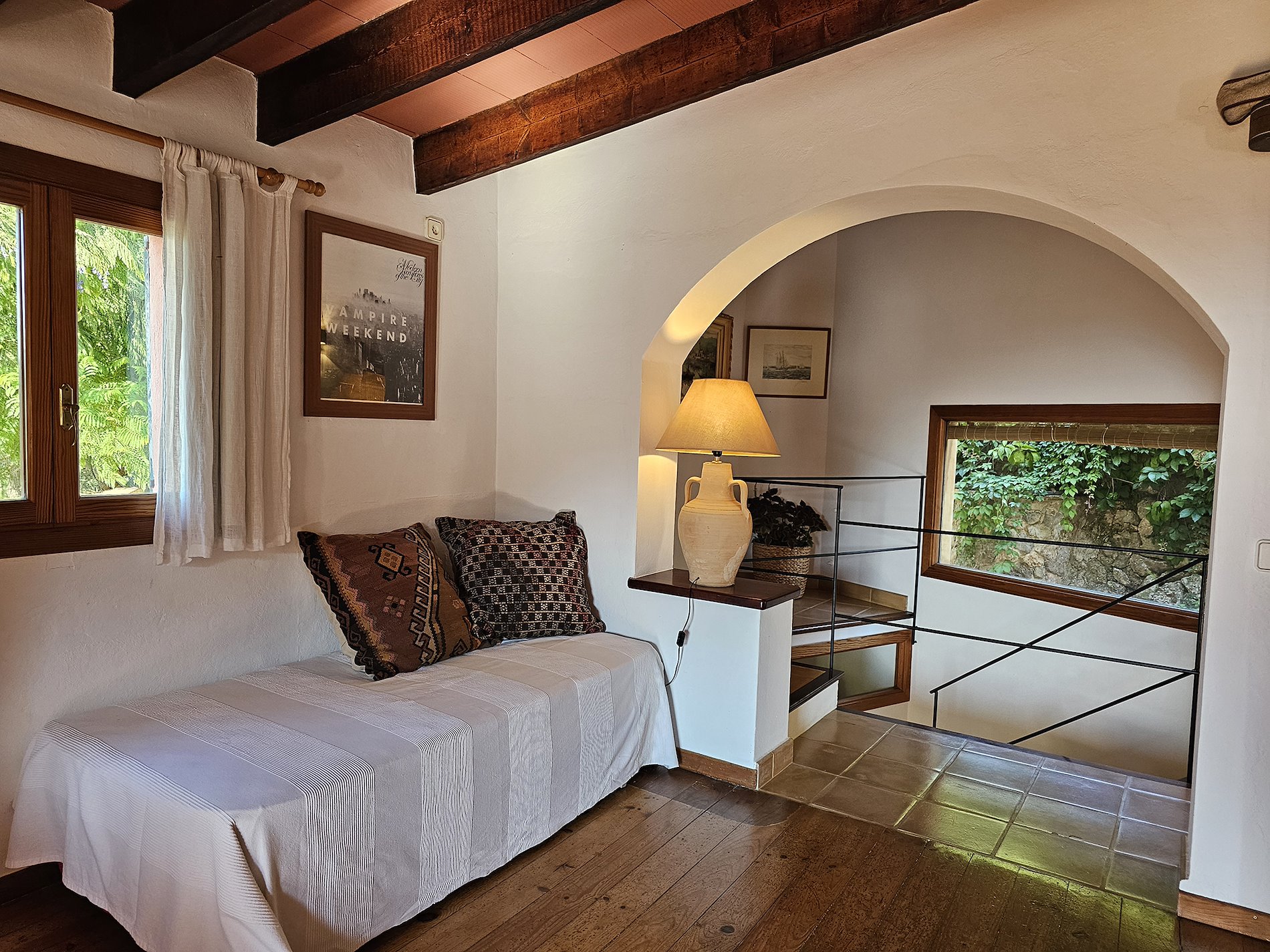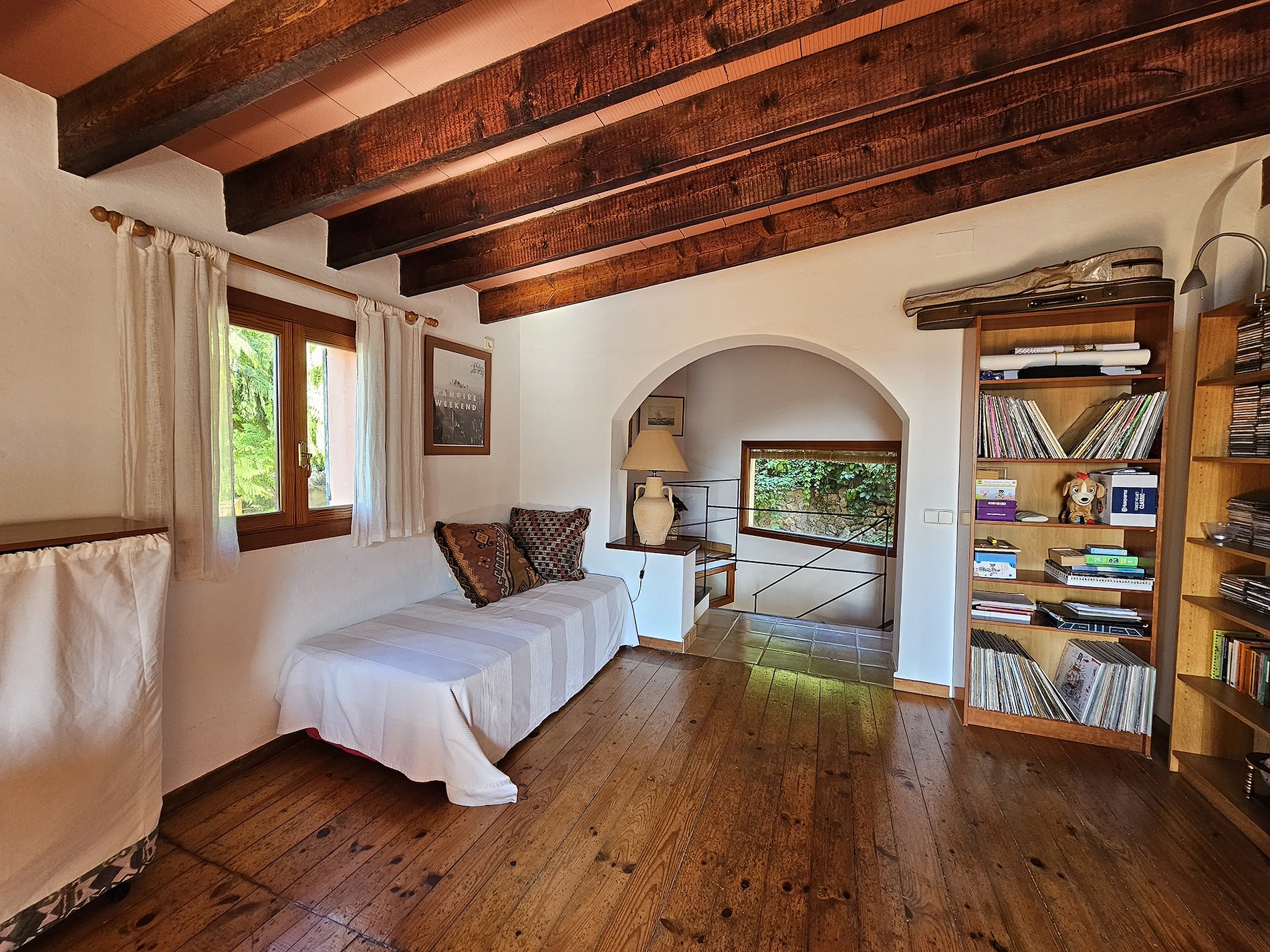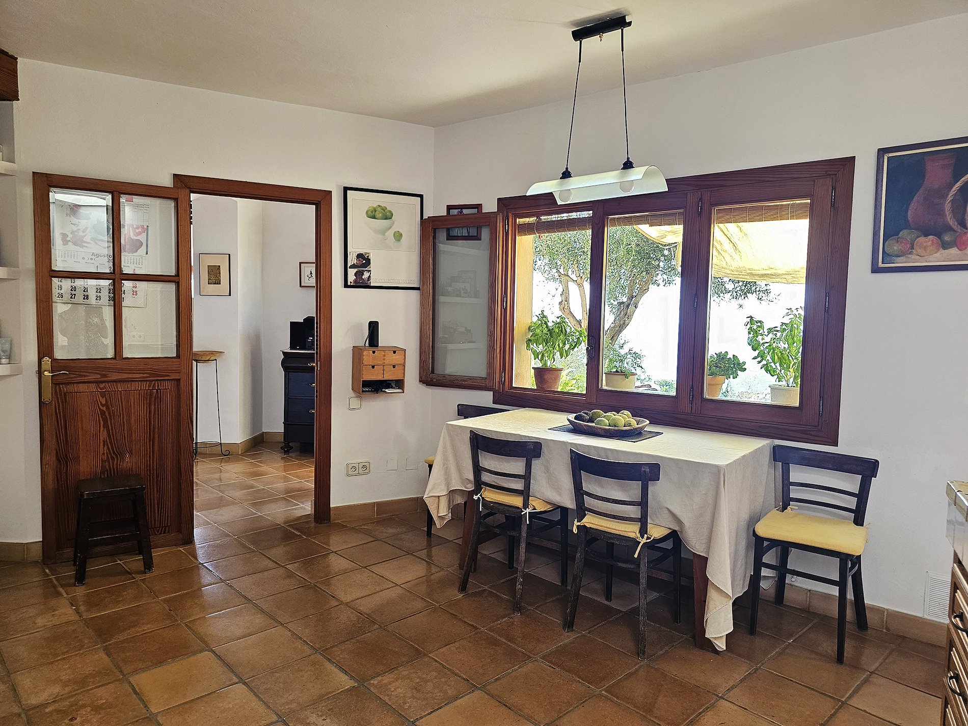 Suelos de gres.Carpinteria interior y exterior de madera. Vigas vistas.