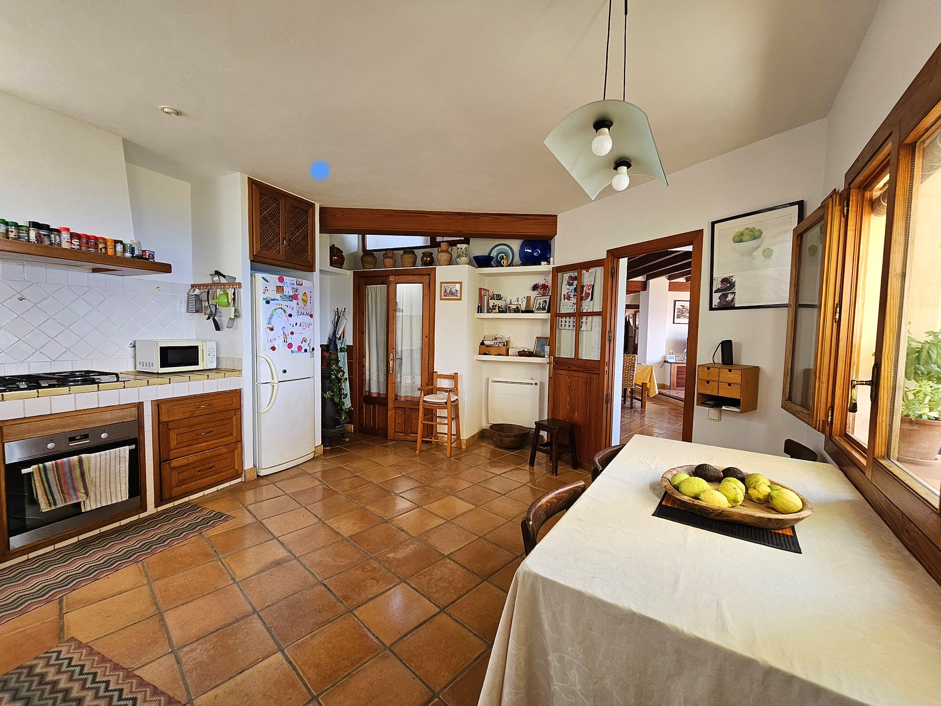 - Cocina, totalmente equipada y amueblada, con acceso a terraza con porche.