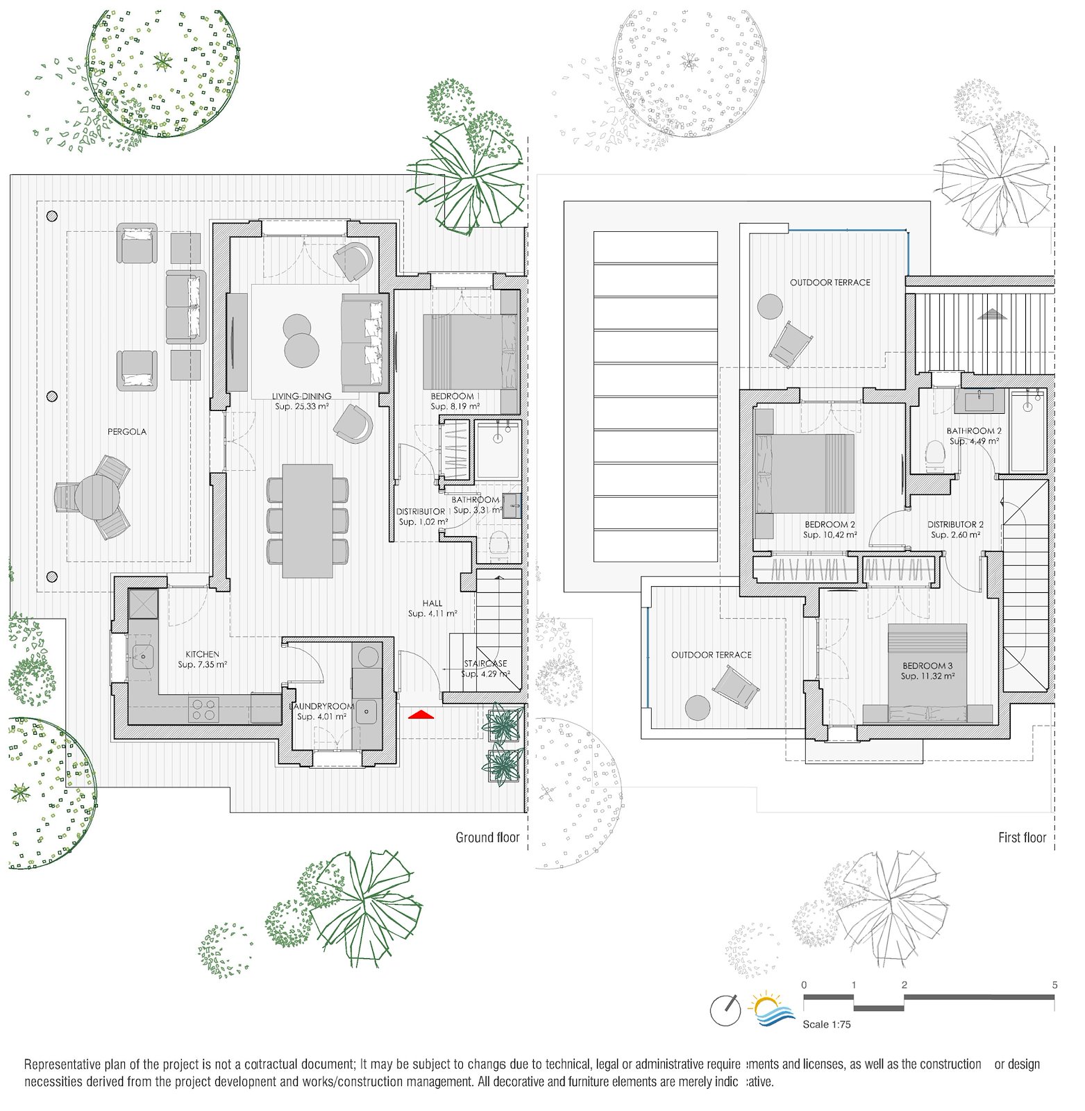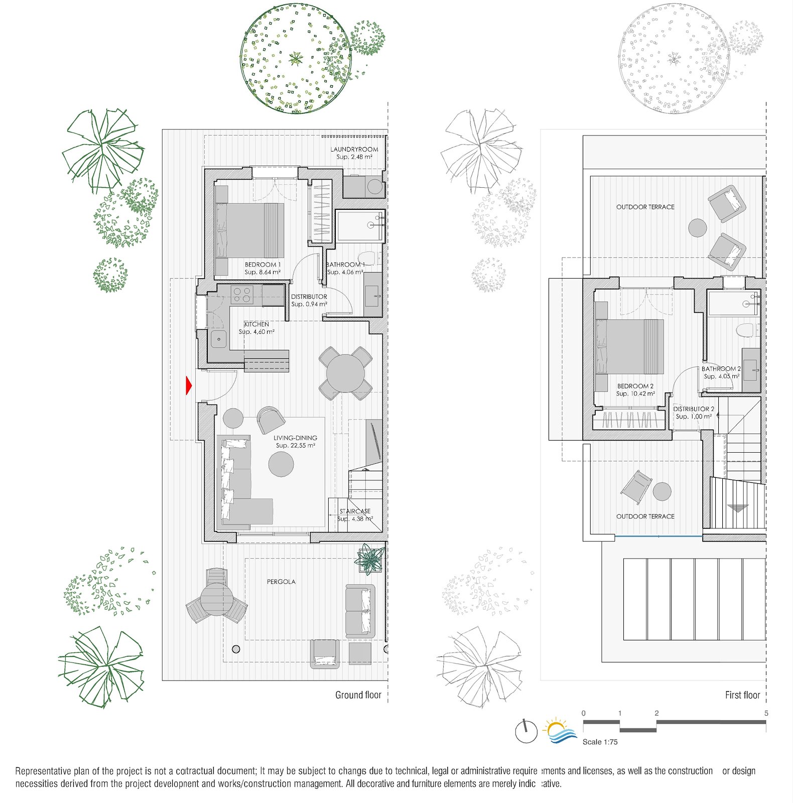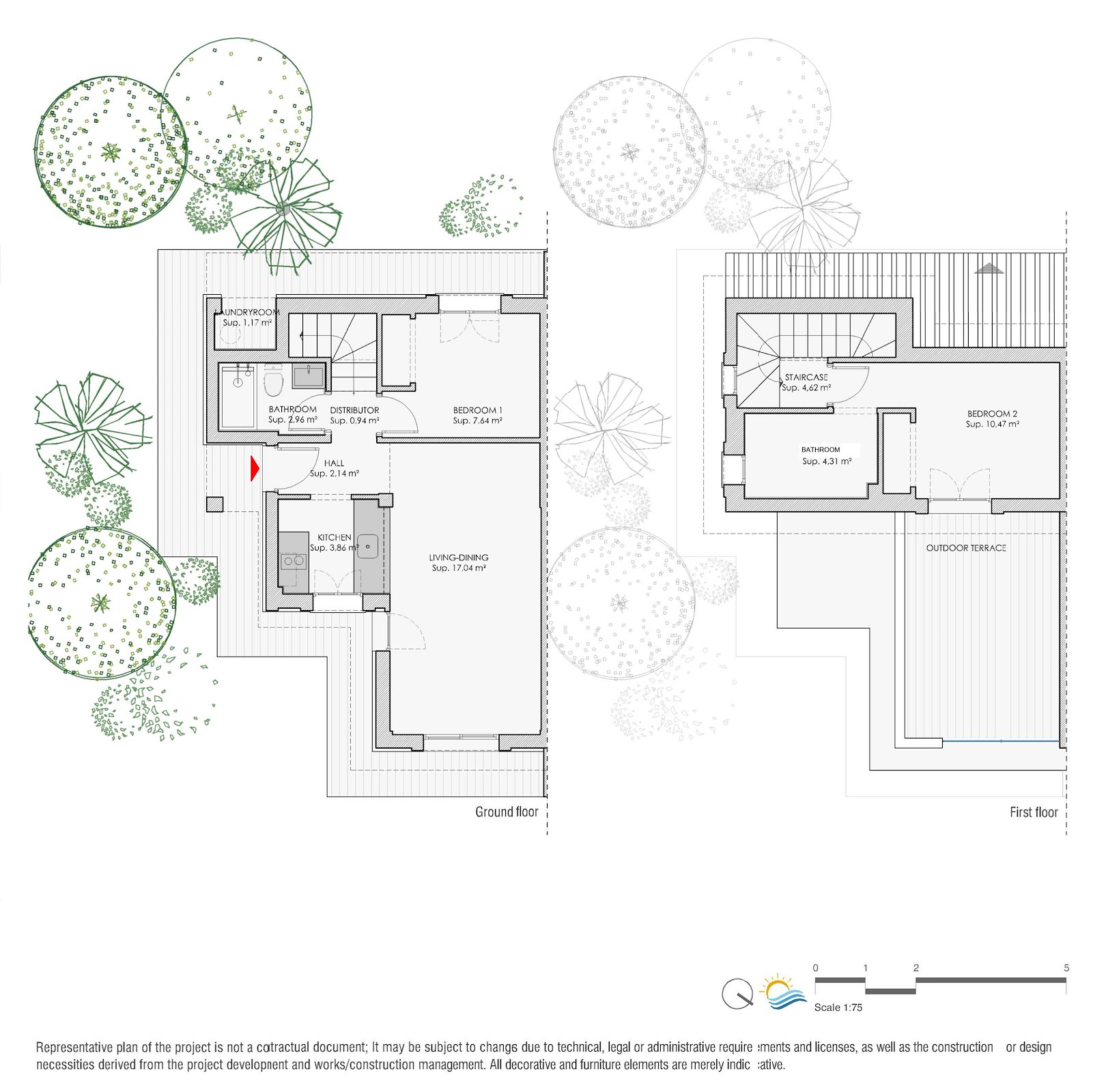 There are different typologies, from 2 bedrooms/2 bathrooms to 4 bedrooms/4 bathrooms. All villas will have a garden/plot and at least 1 uncovered parking space.