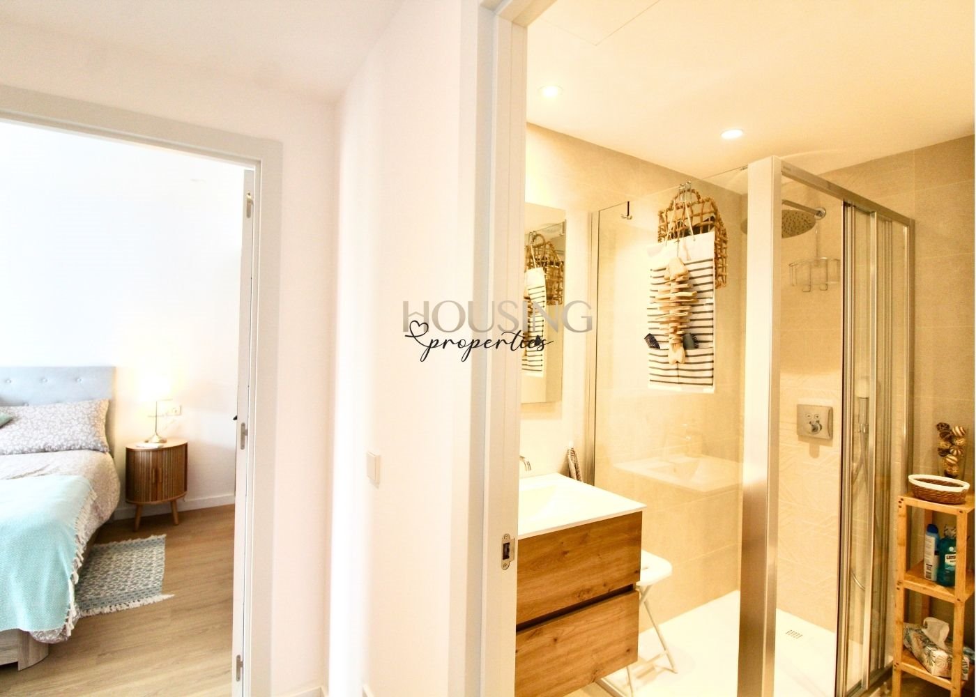 Suelos de parquet laminado. Carpinteria interior lacada en blanco y exterior de aluminio con climalit. Aire acondicionado y climatización por aerotermia. Aislamiento térmico y acústico.