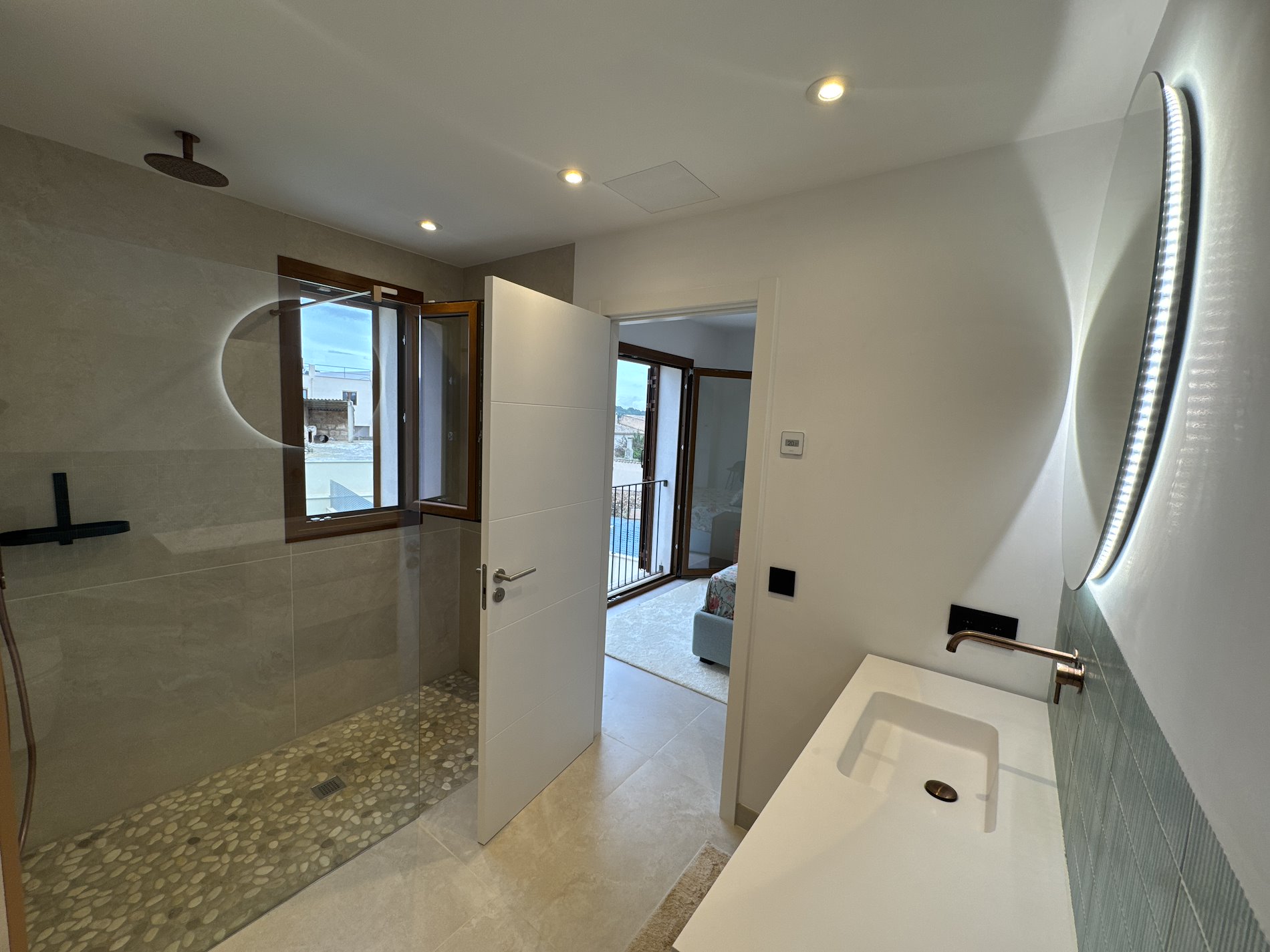 - En la planta superior hallamos 3 habitaciones dobles, una de ellas con vestidor y baño en suite. Otro baño mas, que da servicio al resto de habitaciones, completa la distribución de esta planta.