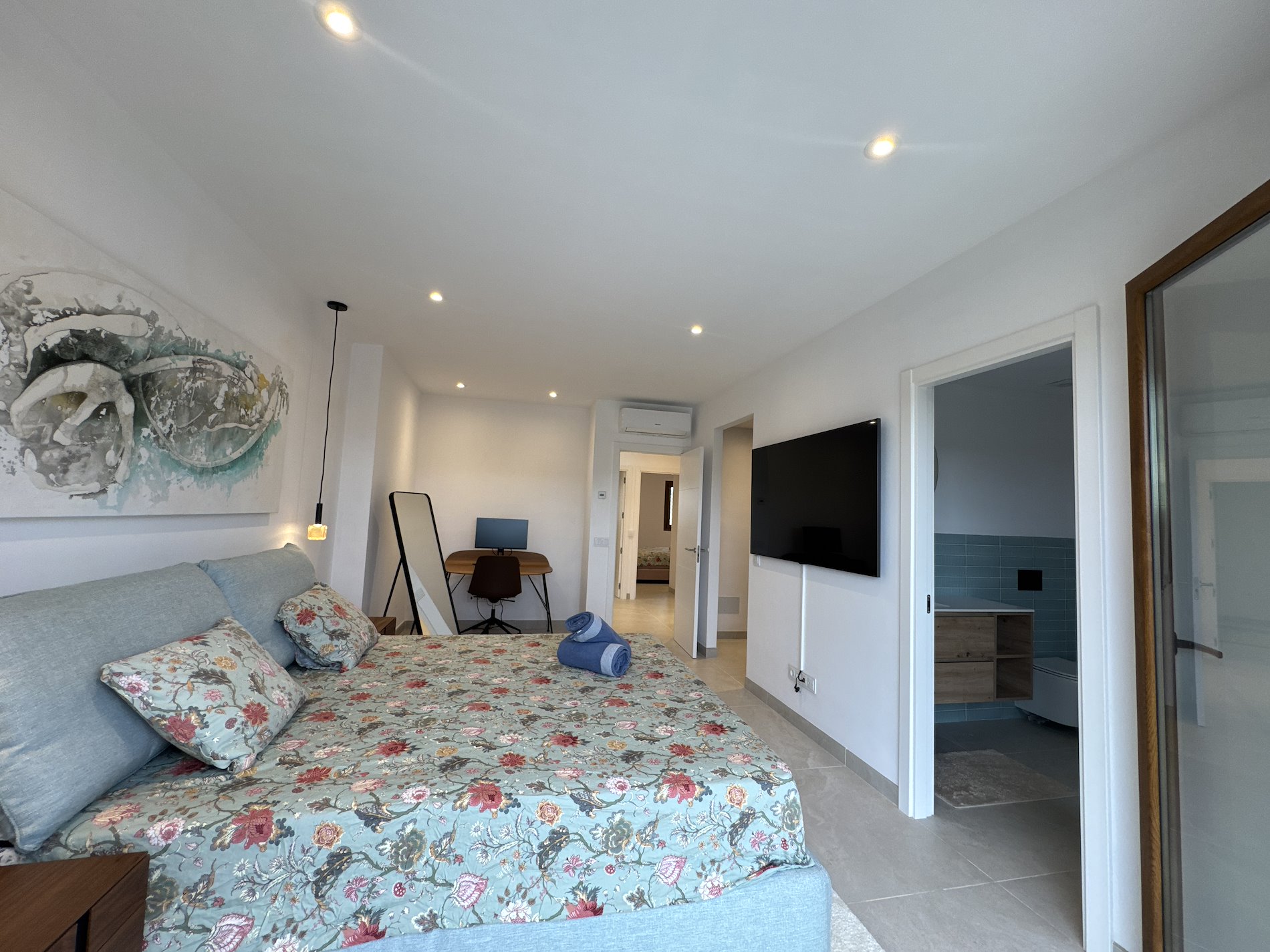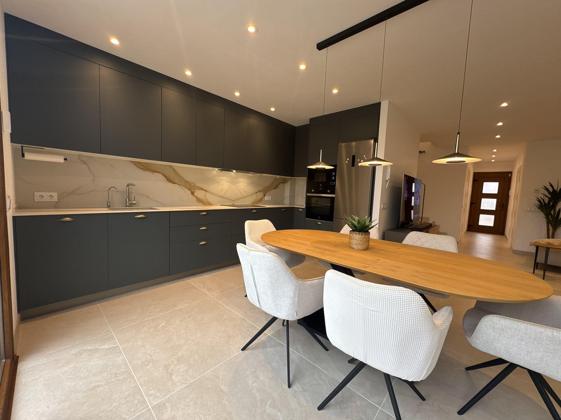 - En la planta baja se ubica el salón comedor con cocina abierta, y con acceso directo al exterior (piscina y jardín). La cocina se encuentra amueblada y equipada. También encontramos una habitación, un baño y una zona de lavandería/despensa/trastero.