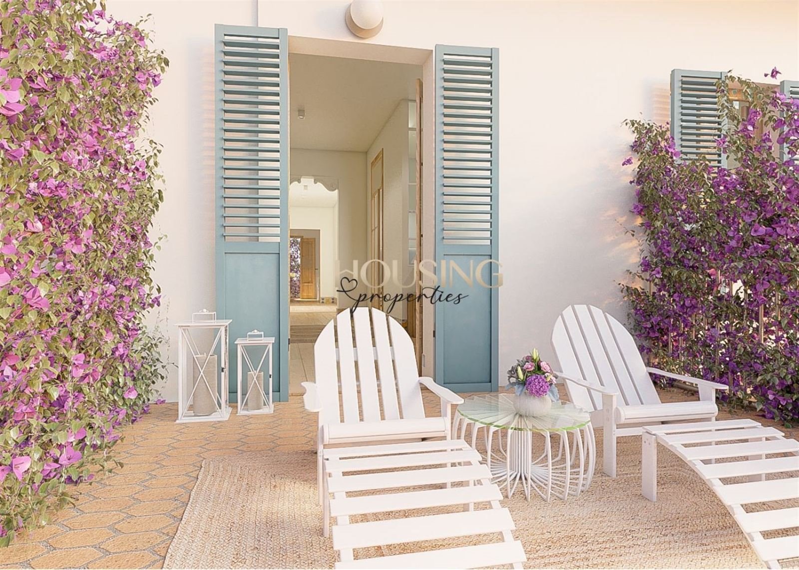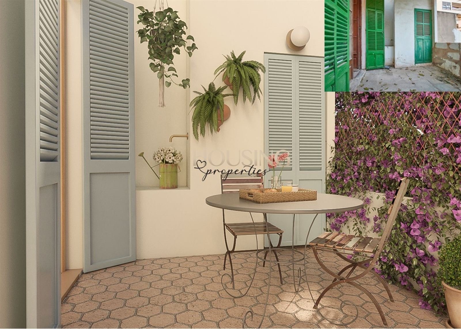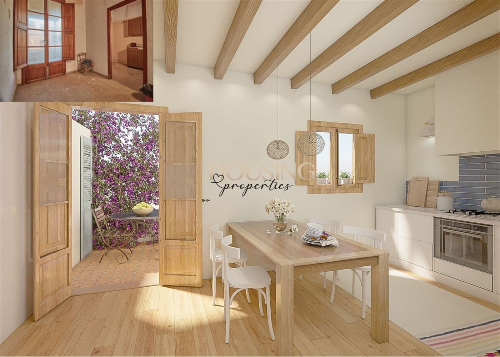 - El primer piso posee todo el encanto de las construcciones mallorquinas de antaño: suelos hidráulicos, techos altos, molduras, carpintería interior original... Con terraza y vistas privilegiadas al mar y a la Bahía de Palma.