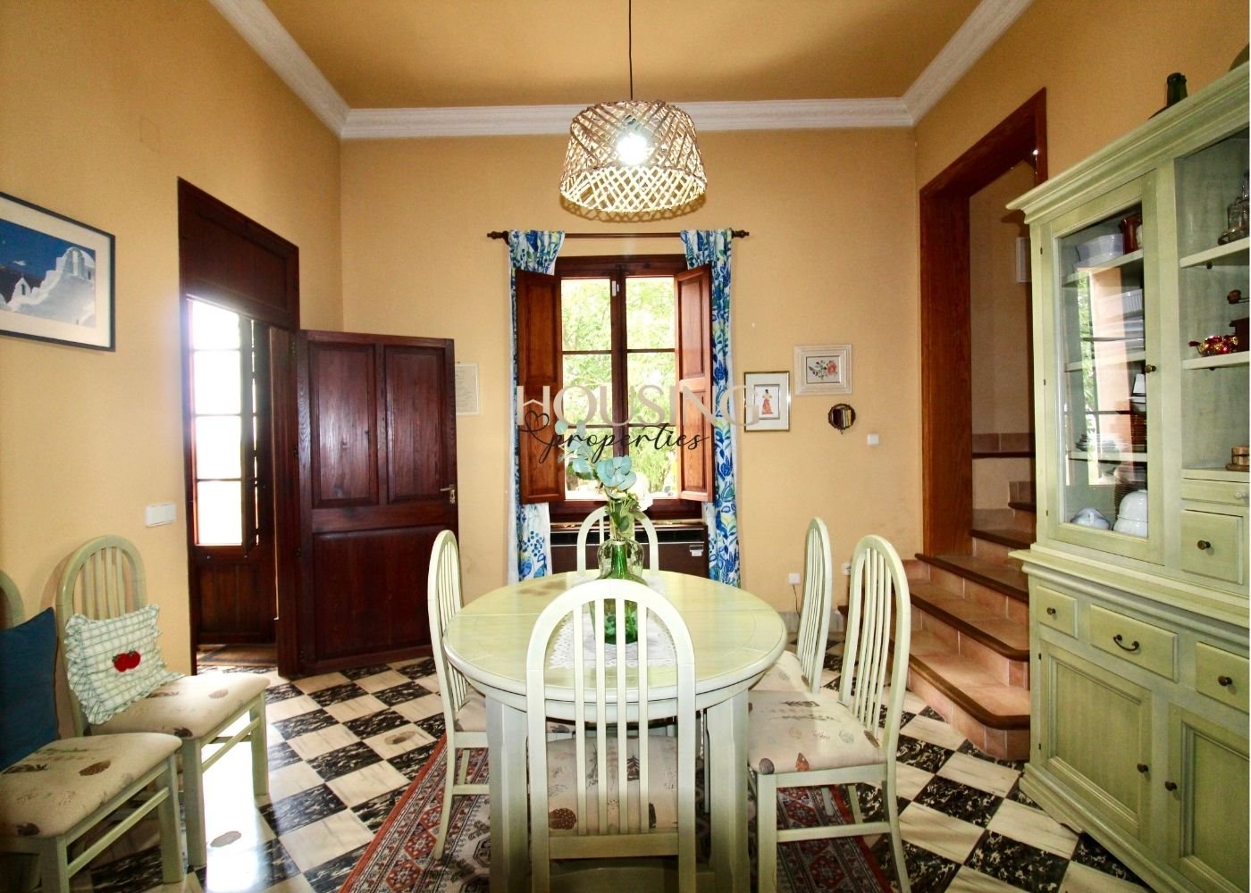 A pocos metros del pueblo de Costitx, y en parcela de 16.000 m2, encontramos esta amplia casa rústica unifamiliar, con varias terrazas, jardín, terreno con árboles frutales, cuadras de caballos, pista de equitación y vistas despejadas a la montaña.