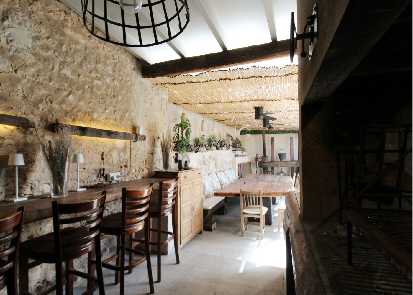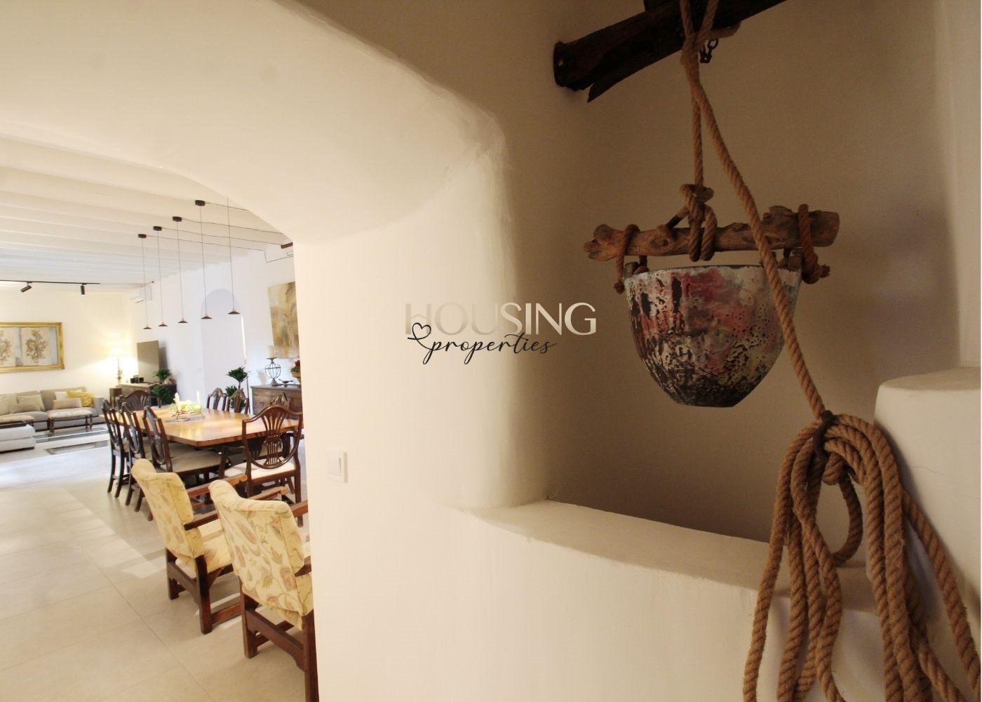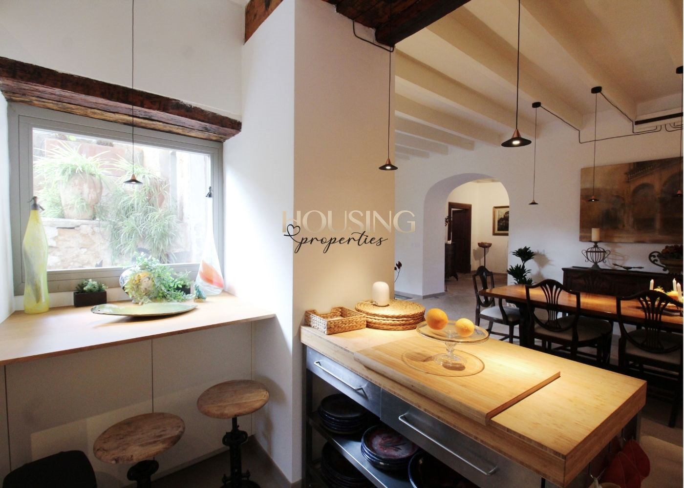 Entre sus muchos y bonitos elementos originales encontramos: fachada de piedra, bonitos arcos, chimeneas, vigas vistas, pozo, bodega/celler... Todo ello, combinado con una decoración interior, igual de exquisita y detallista, hacen de esta vivienda algo realmente especial y único.